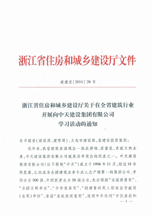 《浙江省住房和城乡建设厅关于在全省建筑行业开展向U8国际建设集团有限公司学习活动的通知》
